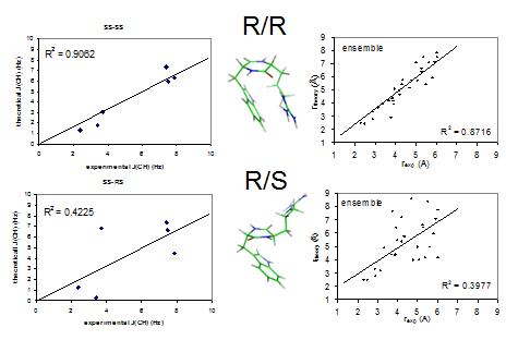 The conformational space occupied by a molecule is sensitive to a number of NMR parameters, including NOEs, homo- and heteronuclear scalar couplings, RDCs and RSCAs. This data will be used together with Molecular Dynamics and DFT calculations to generate conformational ensembles accurately describing the average conformations in both aqueous solution and while interacting with membrane models.