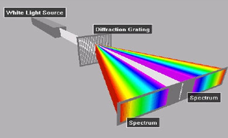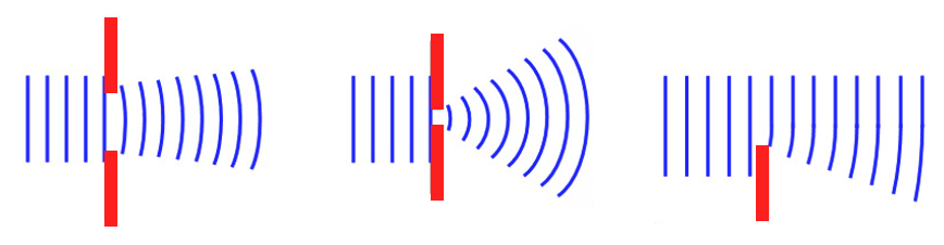 One of the ways we can think of light is as a wave. When a light wave passes near an obstacle, it bends. That is how we see shadows. The smaller the hole through the obstacle, the more the light bends. Light with different wavelengths bends differently. So, for the same size of the hole, light with a longer wavelength will bend more while light with a shorter wavelength will bend less. On the other hand, light of the same wavelength will bend more when the hole is smaller.