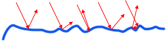 When a surface isn’t flat, the line normal to it is different depending on the point on the surface that you are looking at. Therefore, when light is reflected from such a surface, even though it all comes from the same direction, it is reflected in different directions. This is called scattering. Most surfaces are not smoot so most of what we see is scattered light.