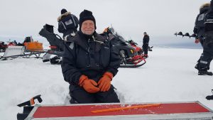 Rolf Gradinger and fullbright professor Rodger Harvey were teaching at the Ecosystems in ie covered waters course. They showed UNIS students how to work on sea ice and understand the physics and biology in the ice.