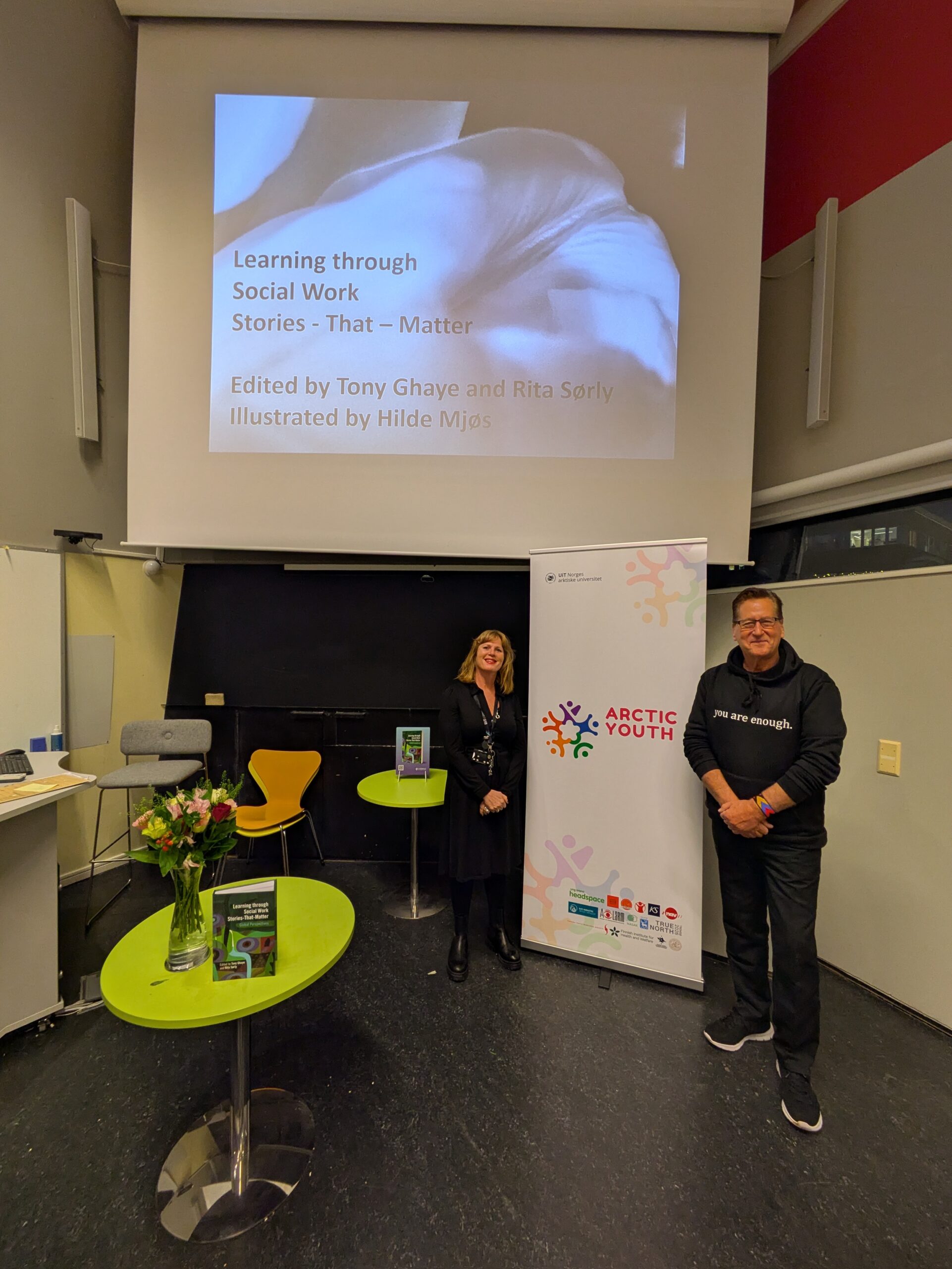 On Thursday 20 November, Arctic Youth hosted a book launch of the newly published «Learning through Social Work Stories-That-Matter: Global Perspectives». The book is edited by Tony Ghaye and Arctic Youth centre leader Rita Sørly, and it includes numerous chapters written by members of Arctic Youth. The book launch was held at UiT The Arctic University of Norway in Tromsø and was well attended. See the full programme for the event here.