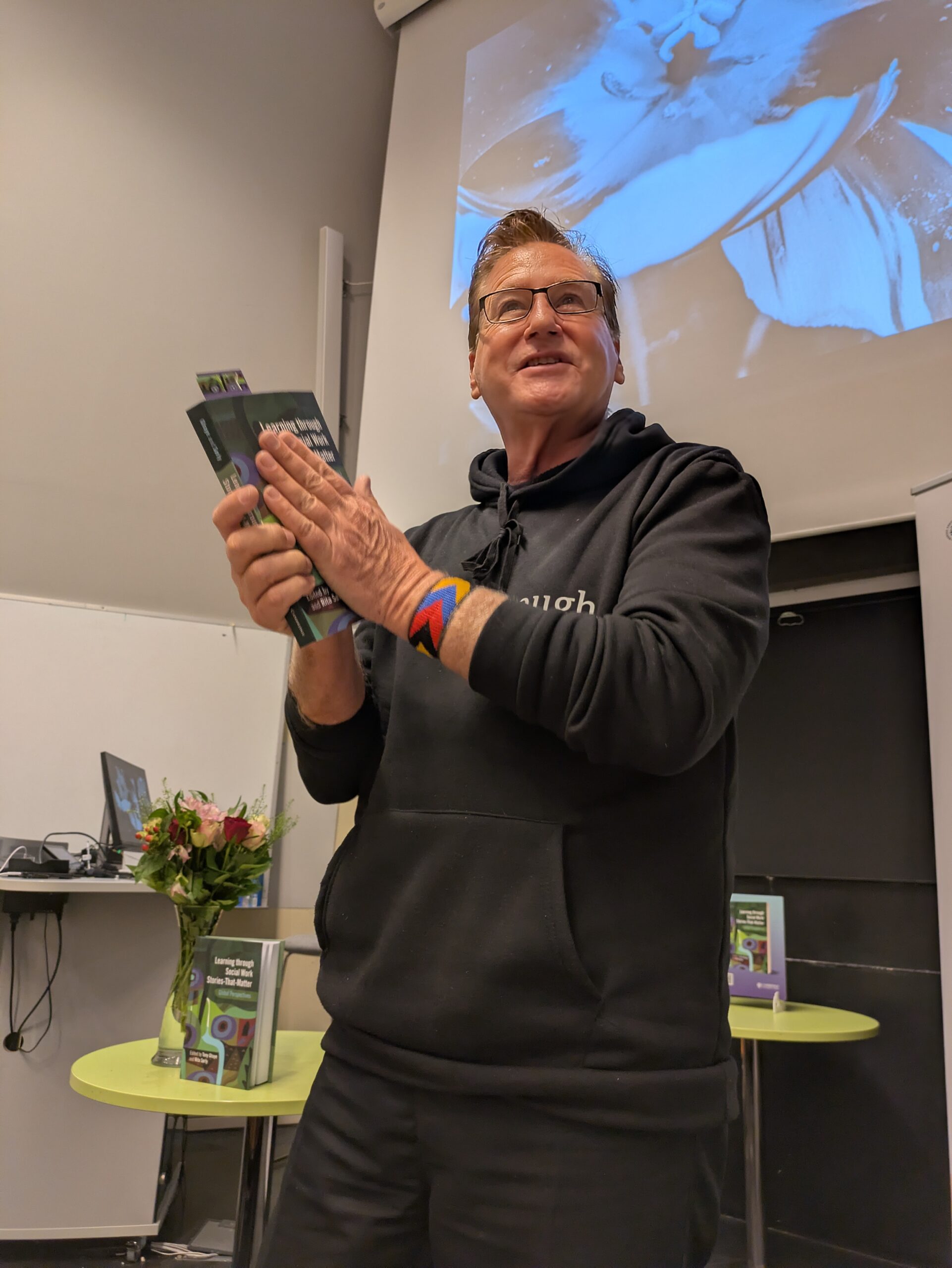 Professor Tony Ghaye served as the book’s lead editor and, alongside Rita, guided the team of contributors throughout the writing process. In his presentation, Tony emphasized that storytelling lies at the very heart of social work. «Social work is about people, and people are stories,» he explained. «It is through stories that we understand what challenges us, what strengthens us, and what connects us. Stories are the foundation for creating change.»