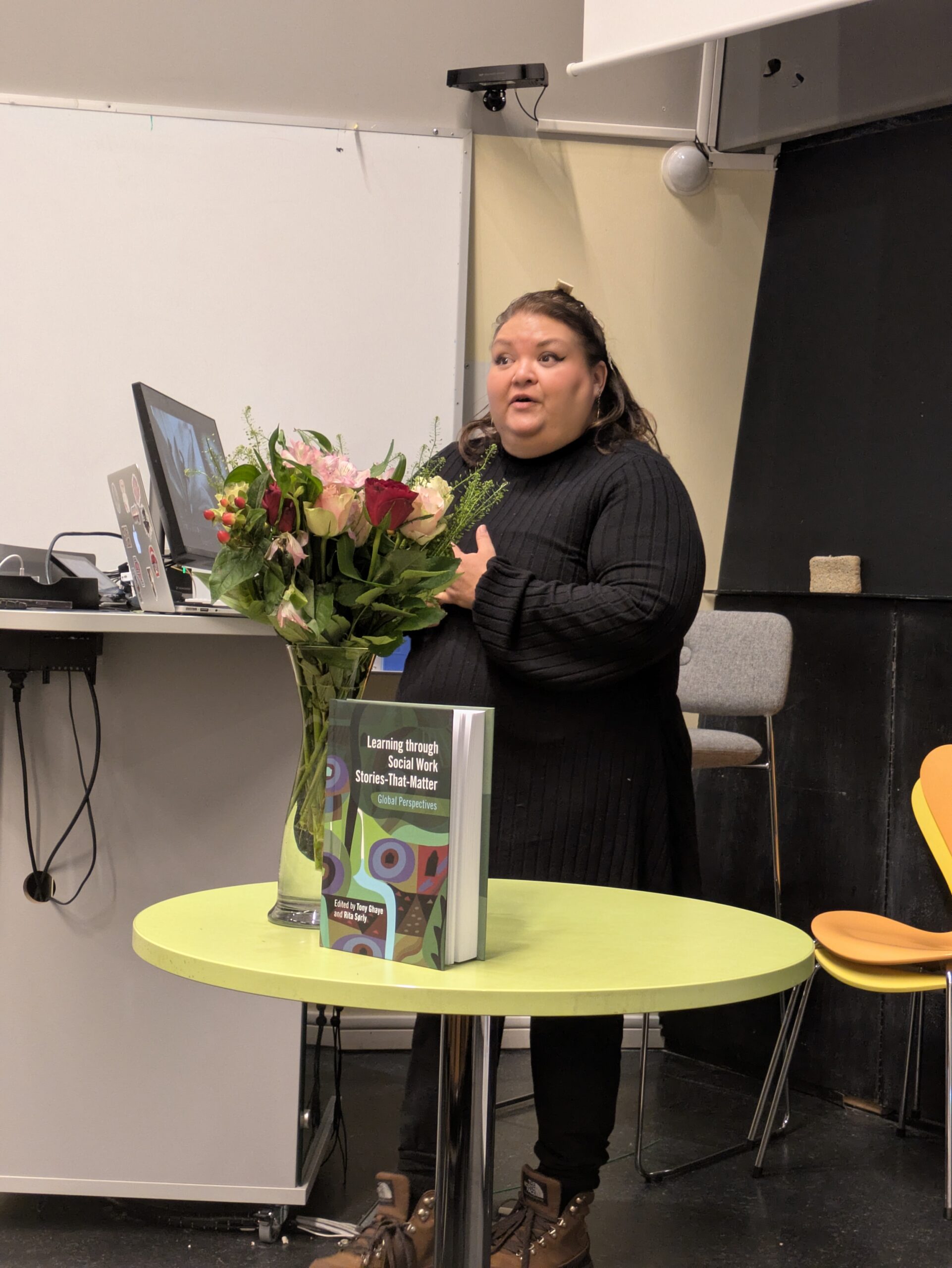 The evening was hosted by Rita Sørly, who introduced the book by sharing insights into its writing and publication process. The book offers both inspiration and understanding through personal narratives from twenty-seven social work researchers, students, and practitioners across five continents. These stories provide a rich exploration of diverse environments, communities, and systems. Each narrative serves as a powerful testament to the profound intersections of relationships, emotions, and lived experiences, capturing moments of genuine human significance.