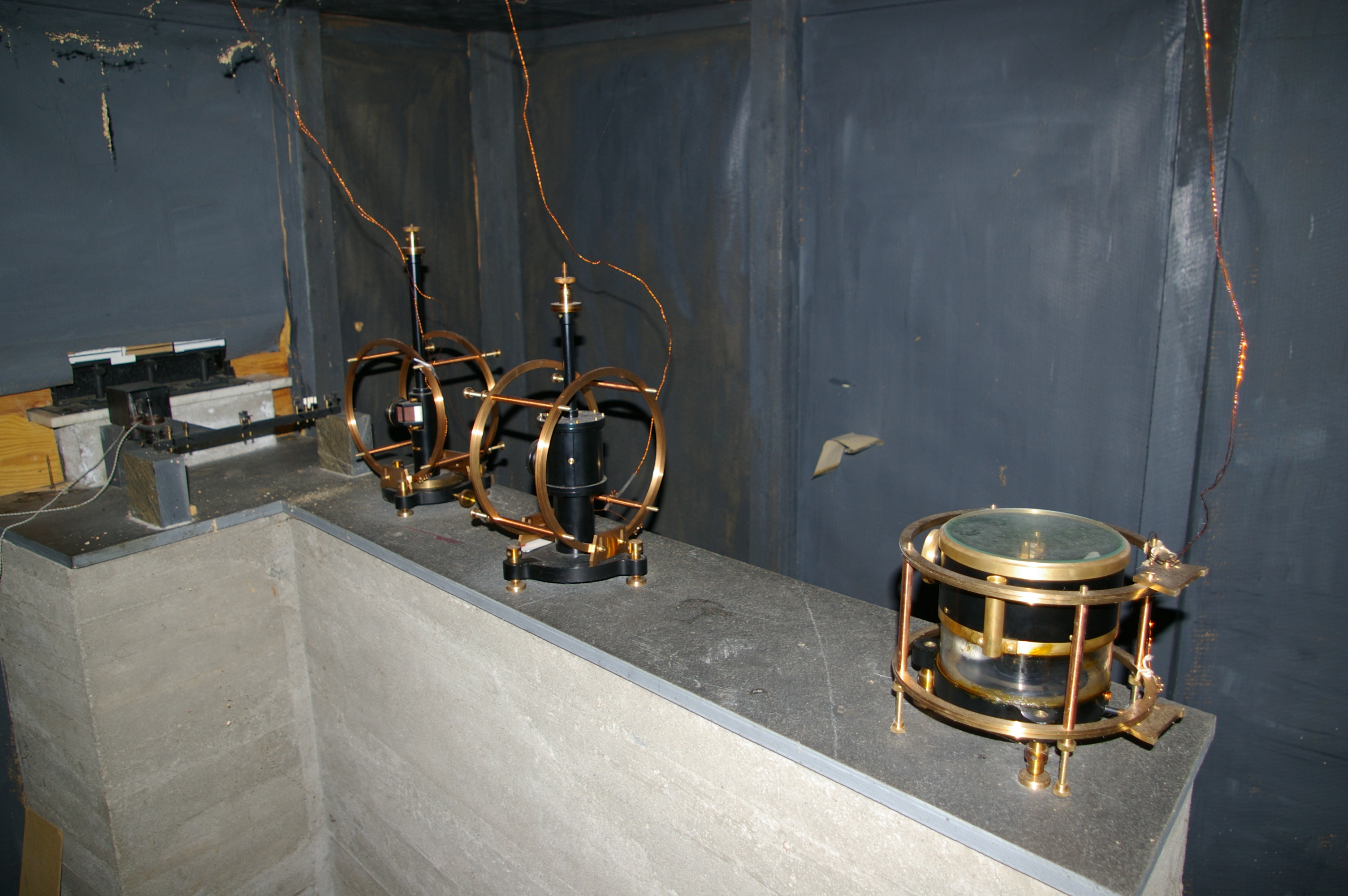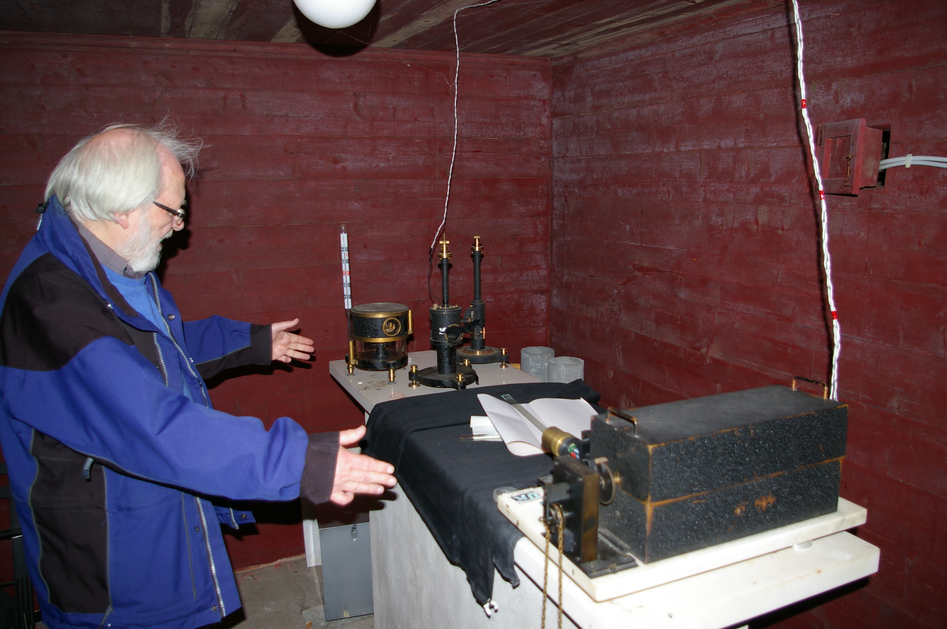 In Tromsø the magnetic observatory has been in operation since 1928. Here the classic variometers are still standing as they did when the last photographic recording was done in the late 1980s. One can just add photographic paper, wind the clocks, turn on the lightbeams and continue recording!